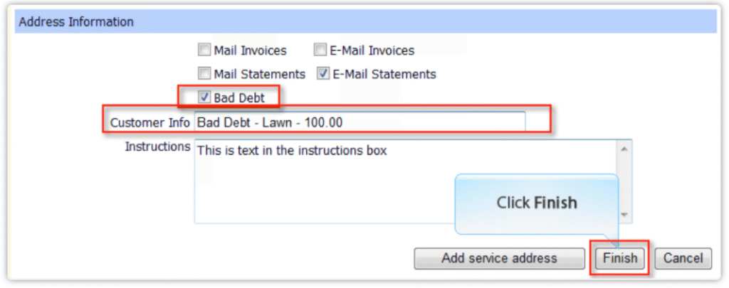 - Enter “Bad Debt <<>> <<>>” in the Customer Info text box.