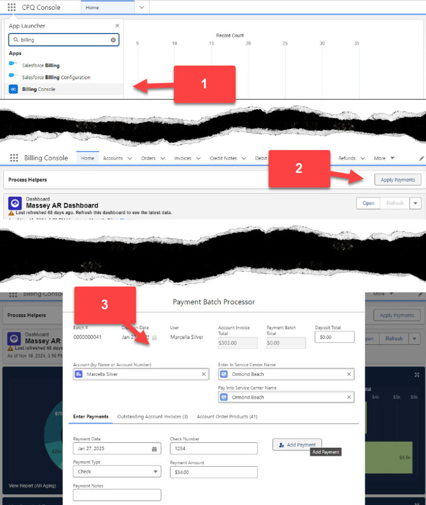 2. From the Home Screen of the Billing Console Click on Apply Payments