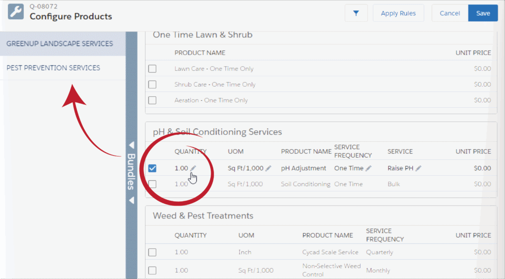 4. For multiple Services, use the Bundles menu to switch between them to continue configuring.
