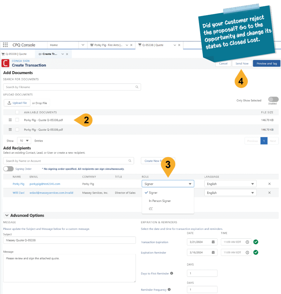 6. Once all signatures are gathered, the Quote is accepted and the Opportunity is Closed Won.